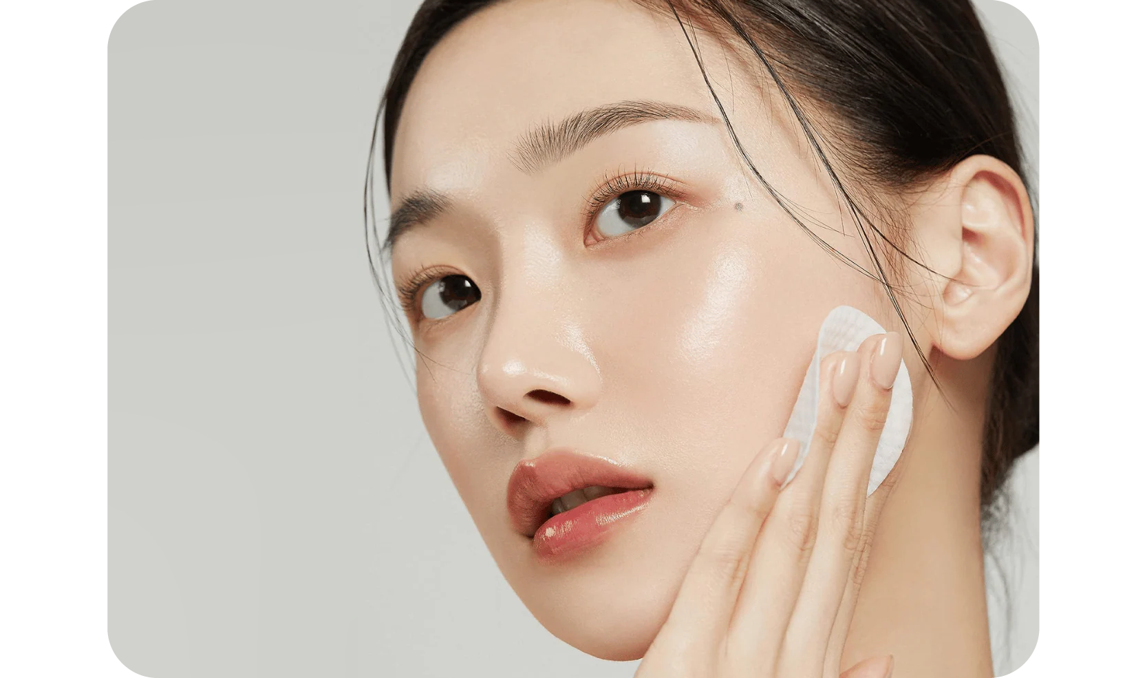 Após a limpeza, use o lado texturizado do pad para esfregar suavemente o rosto, começando do centro para fora.